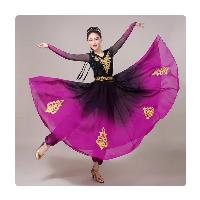 新疆舞蹈裙大摆裙练功裙 黑紫色540度套装+帽子+裤子+腰封
