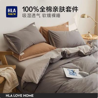 海澜之家(HLA)A类全棉四件套100%新疆长绒棉亲肤 星辰灰+浅灰 四件套/被套200*230 床单款 230*250