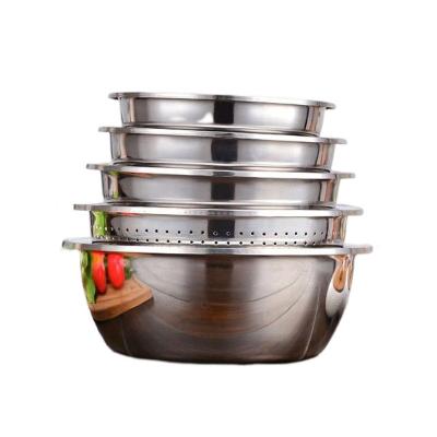 鑫源 不锈钢盆 加厚盆 菜盆漏盆圆盆筛套装加厚大号和面盆调料盆料理盆多功能洗菜盆沥水篮 五件套【4个实盆+1个漏盆】
