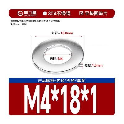 | 包装清单: | 固万基304不锈钢垫片 M4*18*1 50粒 *1 |
