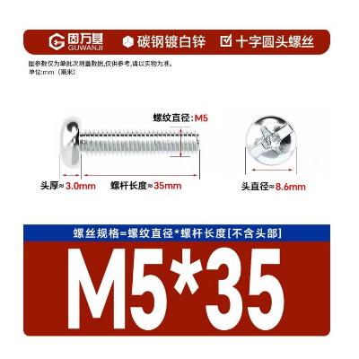 | 包装清单: | 铁镀锌十字槽圆头螺丝机丝螺钉 M5*35[50只] |